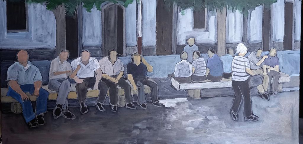 After a nice long lunch break I thought that I’d do a first coat of paint and see if the composition was okay. I cut out 2 figures in the process.