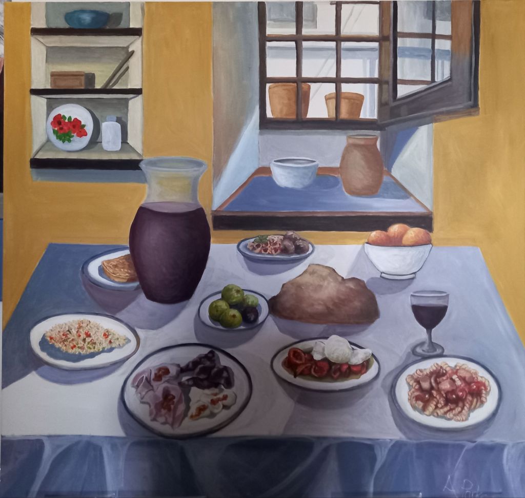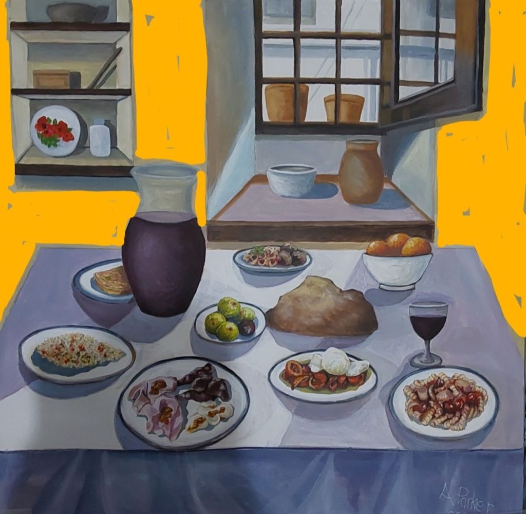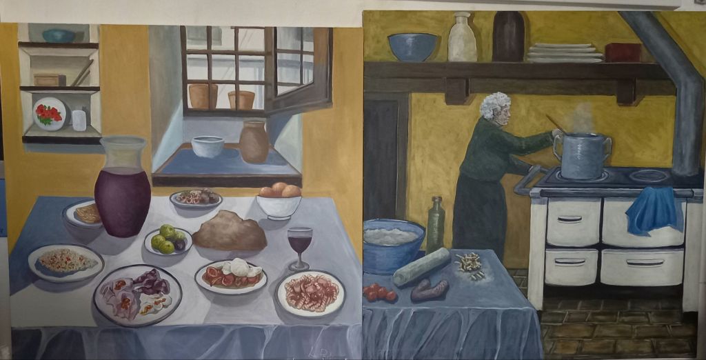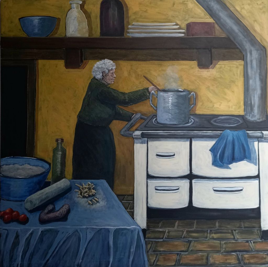 First of all I finished yesterday’s big painting by fixing the old lady’s face and a few other small things.