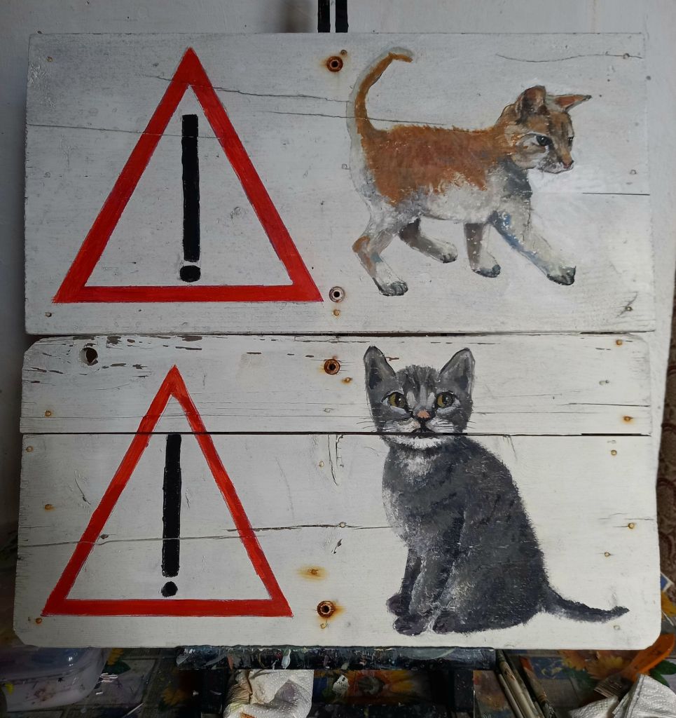 So today I painted another house portrait and then for a treat I fixed the 2 cat road signs which were a bit faded. After all I wouldn’t like to be responsible for any cat accidents.