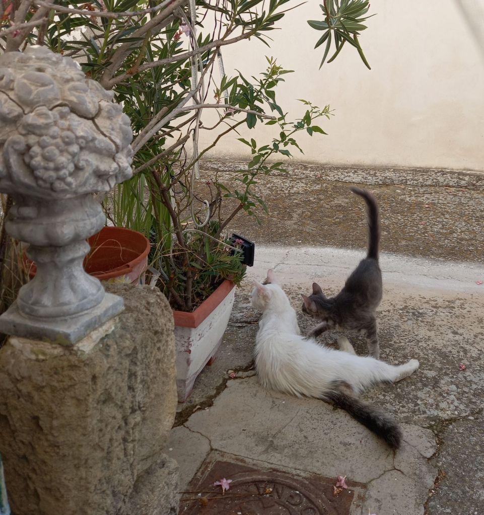 I met Fluffy’s kitten this morning. She was trying to encourage it to come inside and hide under the bed.