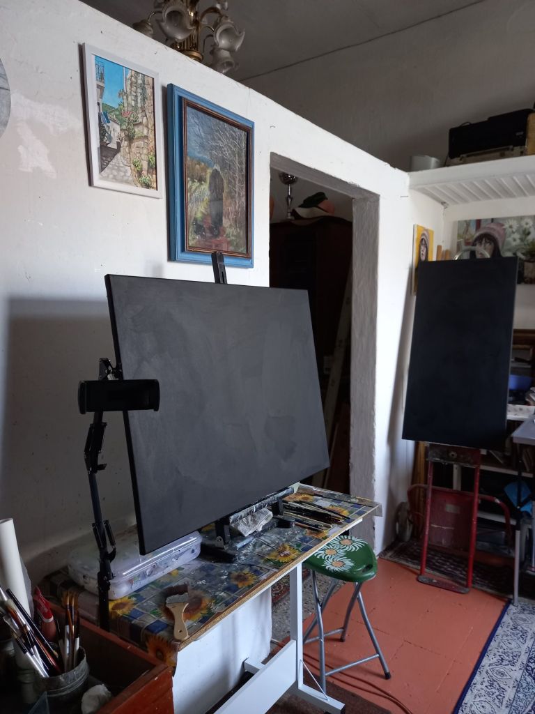I would have liked to paint something, but couldn’t think of anything. I painted two more canvases black to see if that would help.