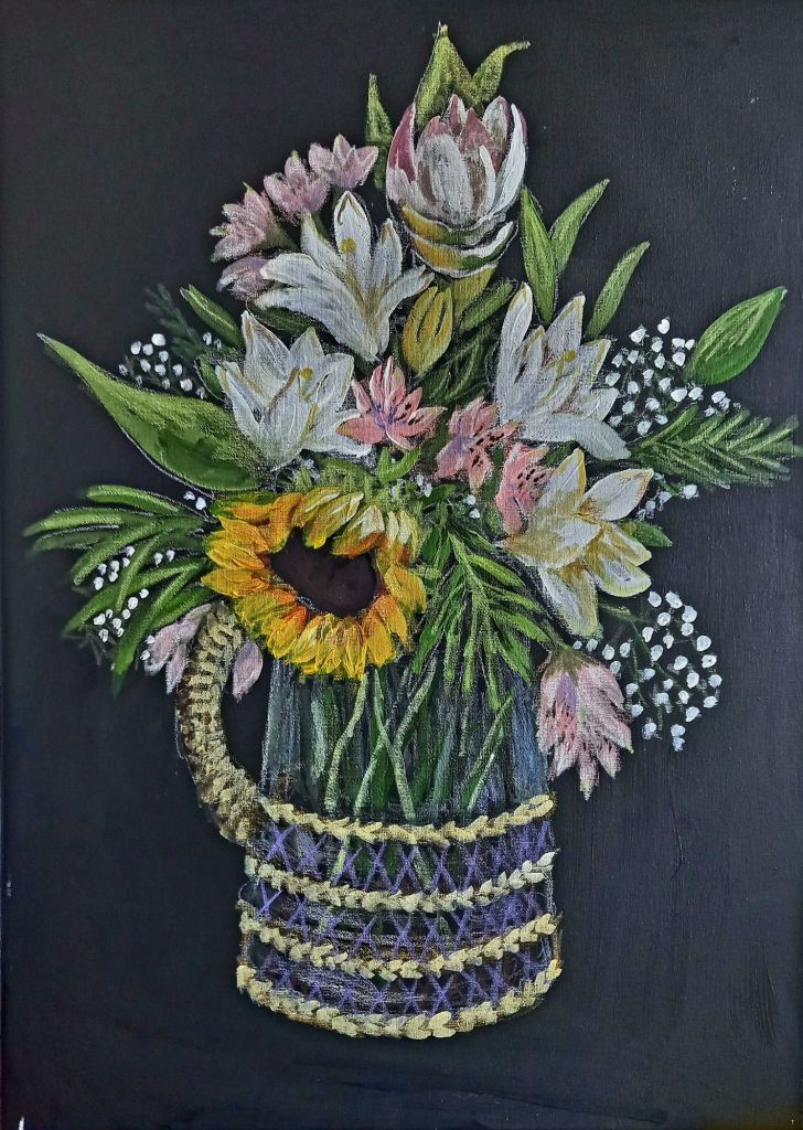 It was so good. My paintings looked the best they ever have, being actually displayed rather than crowded on a wall or table. I was impressed. People were so friendly. There was a buffet. It was a big deal for me.