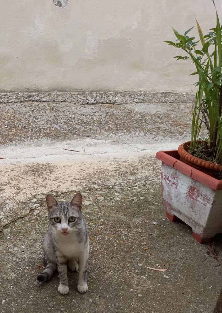 This morning I had a surprise visitor. Fluffy’s kitten came to see me, by herself.