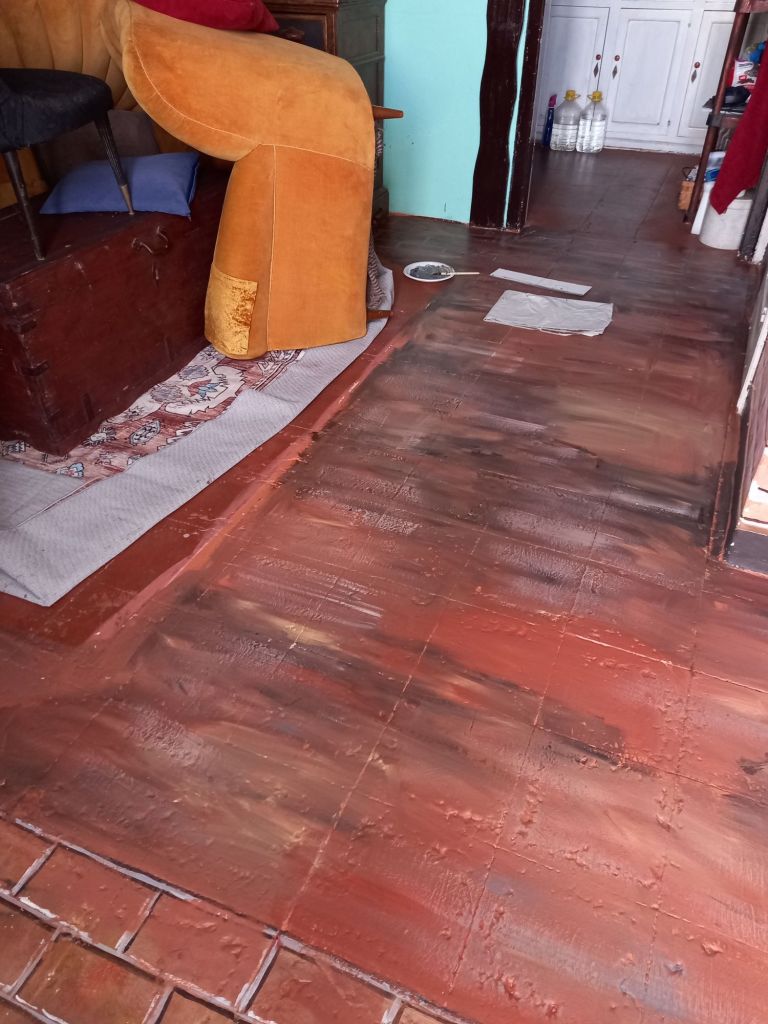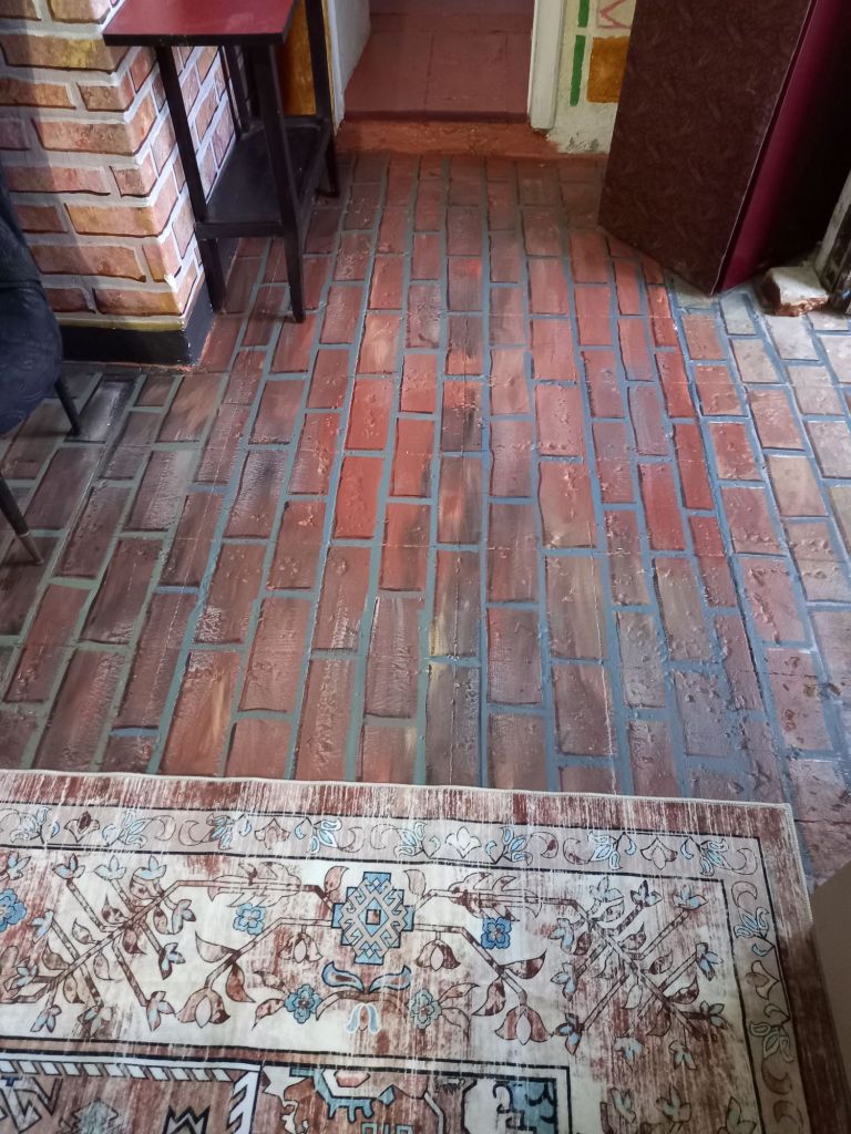Now I have a lovely brick floor and a beige cooker. ( I was getting tired of having a red cooker. )