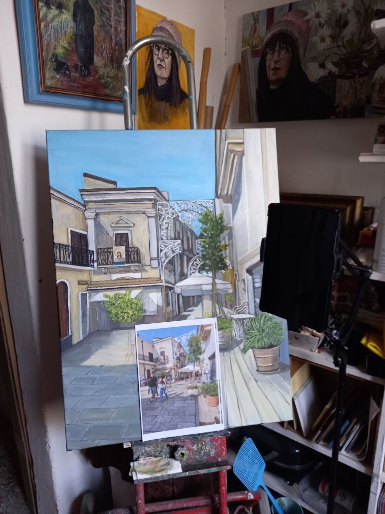 This afternoon I thought that I’d draw people on my Pisticci feste painting. But I was tired and not in a good mood. So I’ll do it tomorrow.