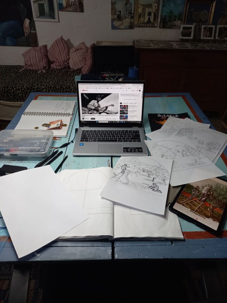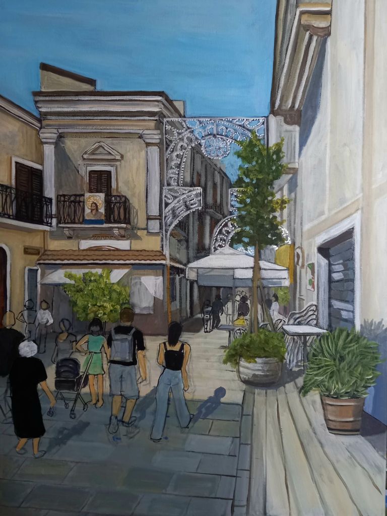 By 2pm I couldn’t put off drawing figures on my Pisticci feste painting any longer.