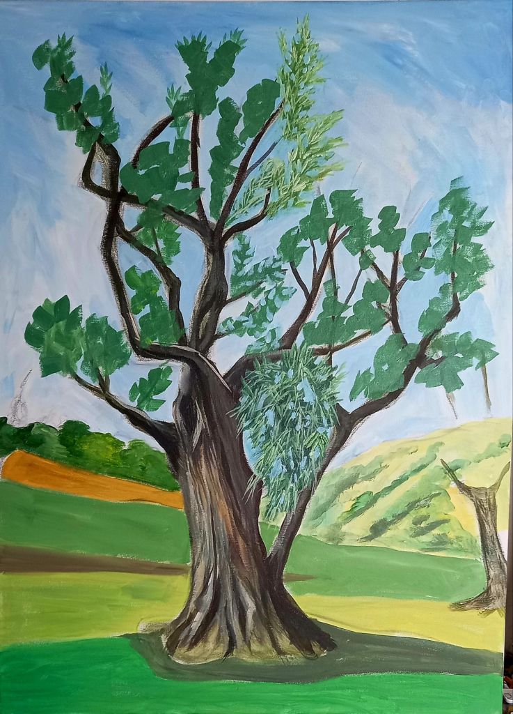 After finishing the painting I decided to have a little play with the olive tree I blocked in yesterday. I was experimenting with how best to paint the foliage.