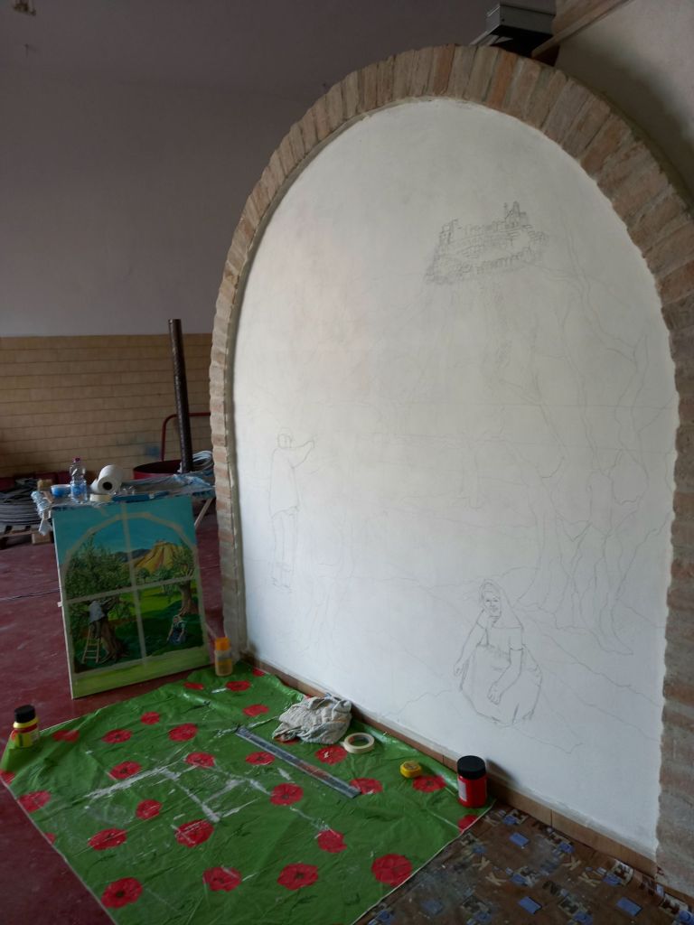 The best bit about today was feeling like I was young again.( My idea of young was being in my 60s when I first painted murals!) I enjoyed working hard and apart from a slightly aching arm it was a lot of fun. I was well organised and had everything I needed so far.