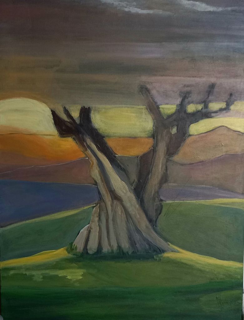 I thought that if I was going to paint another olive tree I would like to do it on a black background as it’s not a practice for the mural.