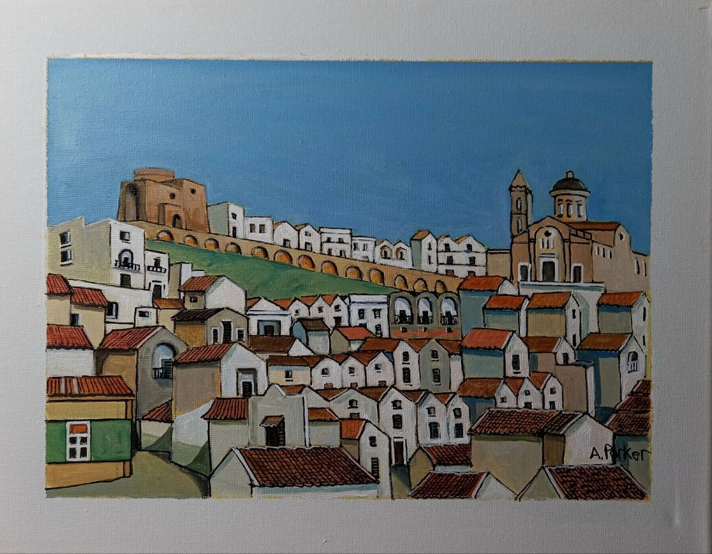 If you had asked me 6 weeks ago if I could paint 12 small paintings of Pisticci including hundreds of little houses and enjoy it I would have laughed and said that after painting possibly thousands of little white houses there was no way I would chose to paint any more.