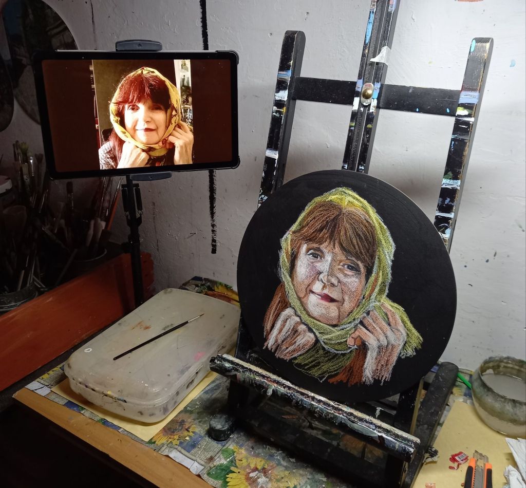 After lunch I painted another 3 round canvases black and then began the next portrait. It’s definitely not flattering, but it should get ” better” tomorrow.