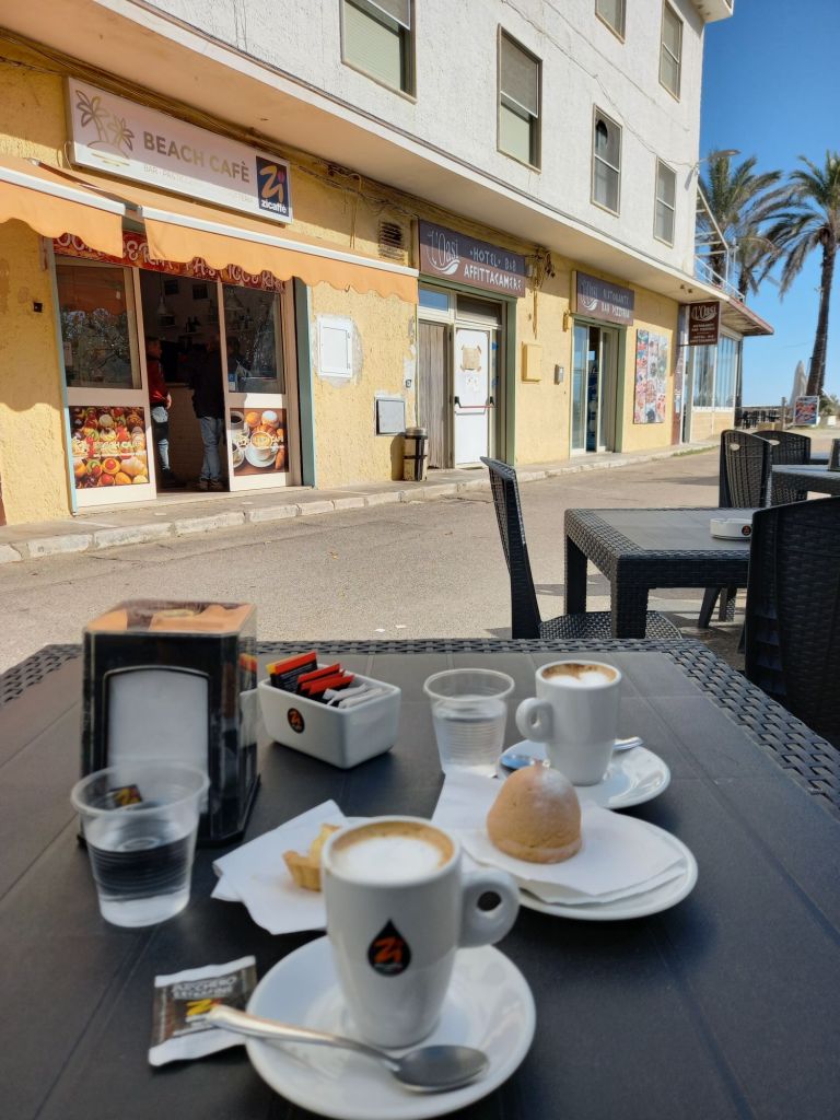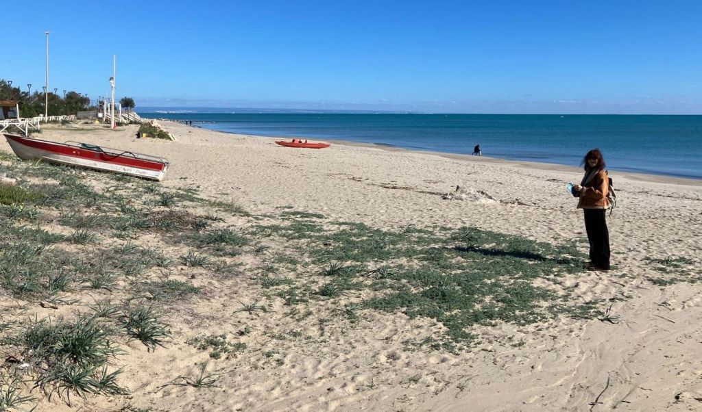 Today I was at Metaponto where we went for a walk on the beach. I was wearing my new jacket, but I had to take it off as it was too hot.