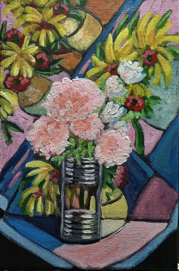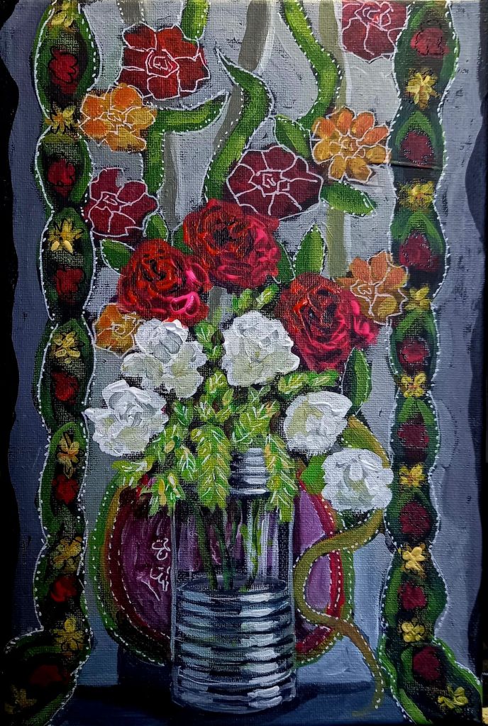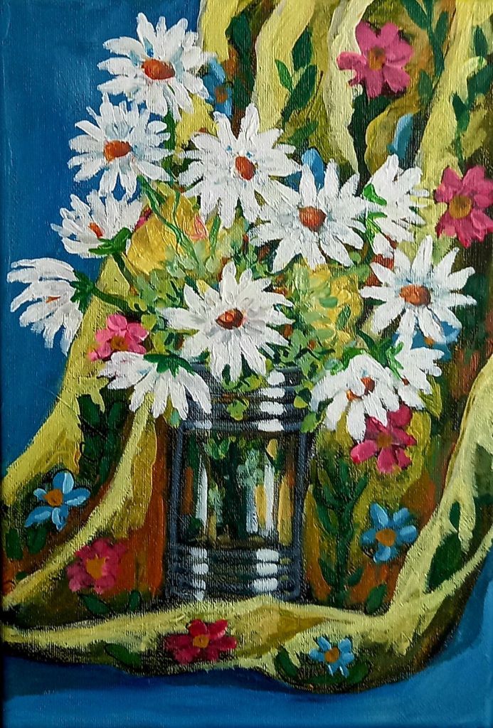 It’s been a good working day. Tomorrow I need to go out and hopefully I’ll complete another small scarf and flowers painting.