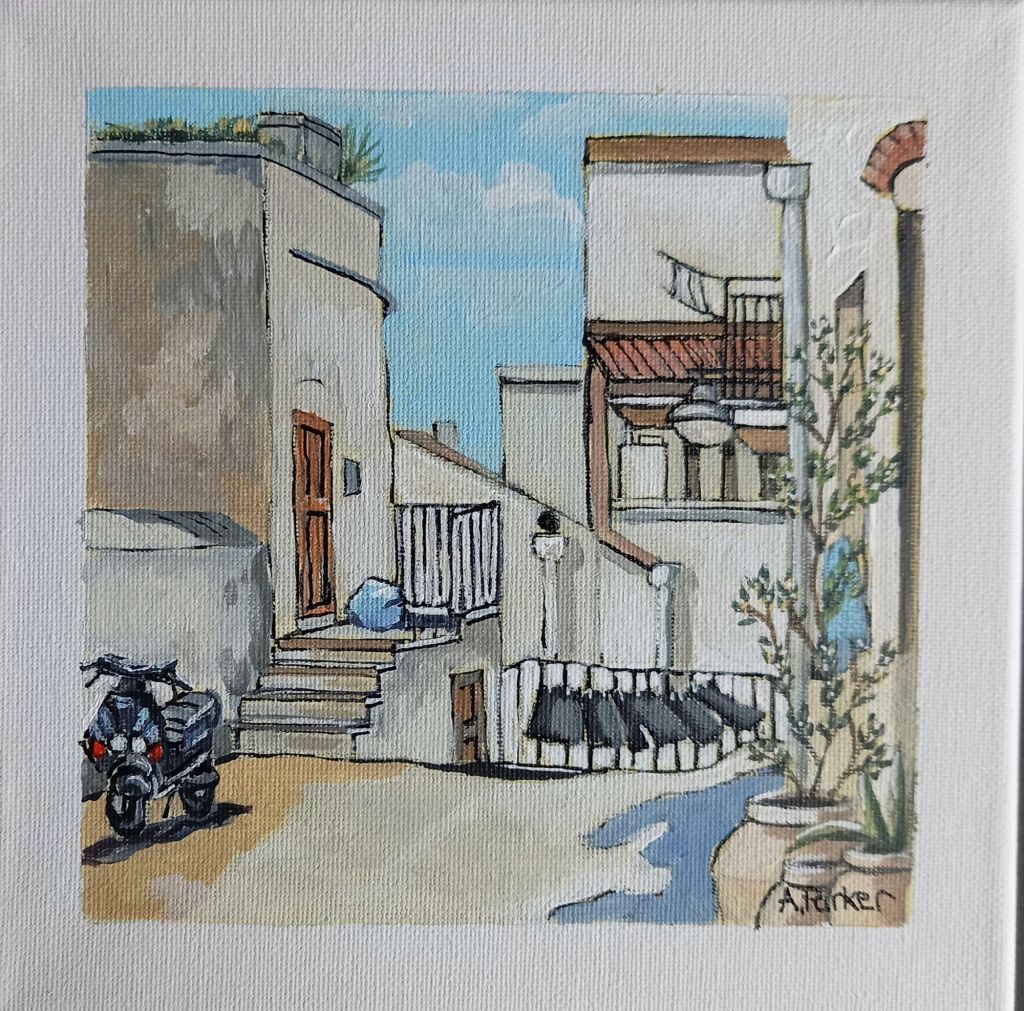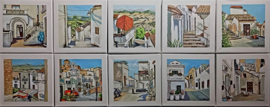 I started about a week ago, to paint 10 Pisticci scenes. ( the canvases are 20x20cms) . I thought it would take me about 2 weeks to complete them all. But I painted the last 2 today.