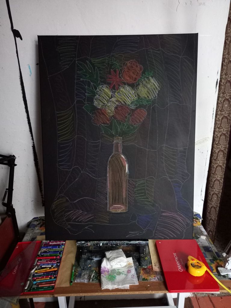 I’m still not quite ready to start painting again. Though I have drawn, very roughly, the next flower and scarf painting.