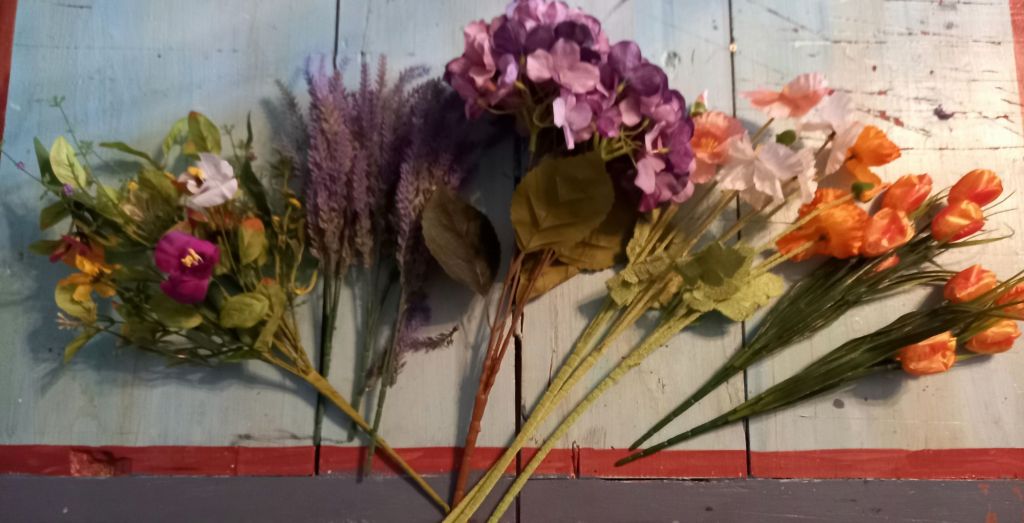 Two more scarves arrived with the postman and a whole bundle of fake flowers.