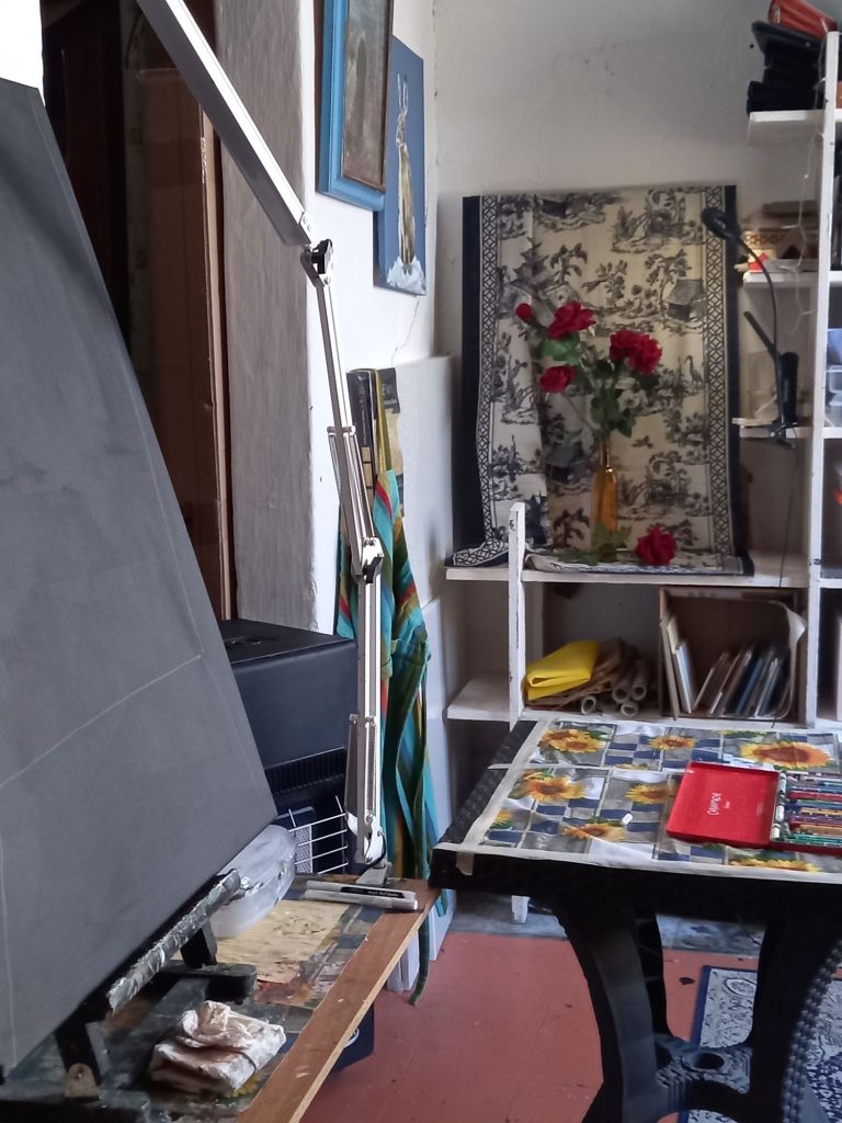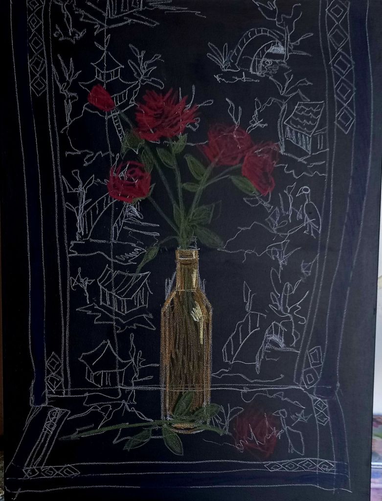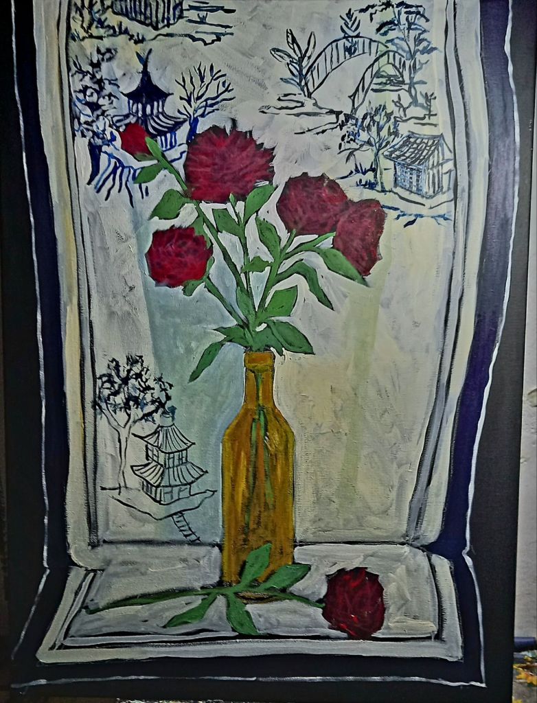 I thought that I’d paint the last (10th) scarf and flowers painting. I bought this scarf particularly to paint as I don’t think it goes with any of my clothes.
