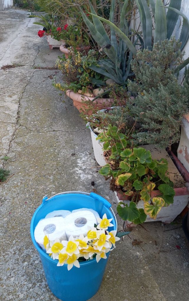 I bought a bucket, some other stuff and some plastic daffodil type flowers.