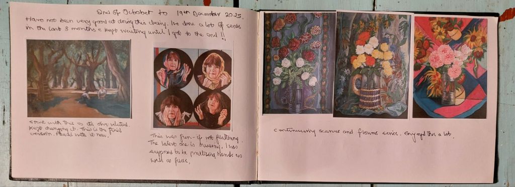 Then I remembered that I hadn’t kept up my work diary for ages. Beginning of October actually! Spent ages finding photos , sending them , printing them and then sticking them in the diary.