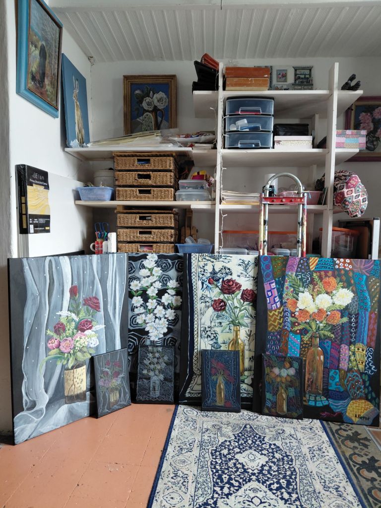 So this afternoon, without a whole lot of enthusiasm I decided to draw four small copies of my remaining scarf and flower paintings.