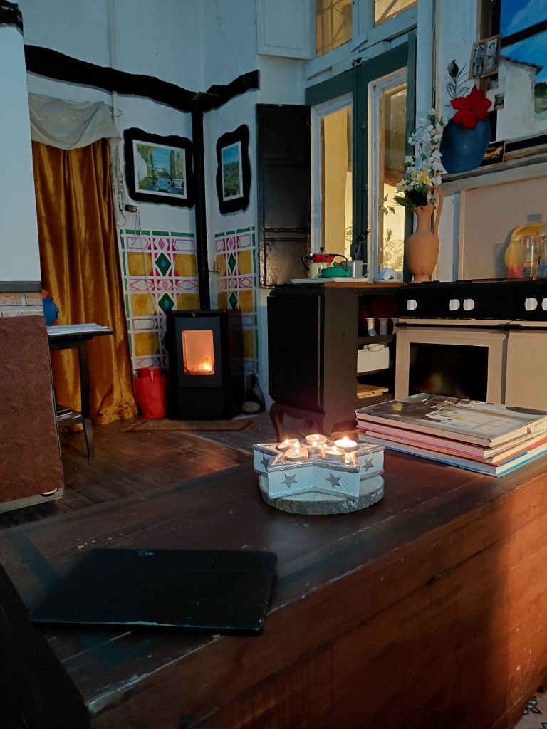 Now I’ve lit the pellet stove. It’s warm and comfortable.