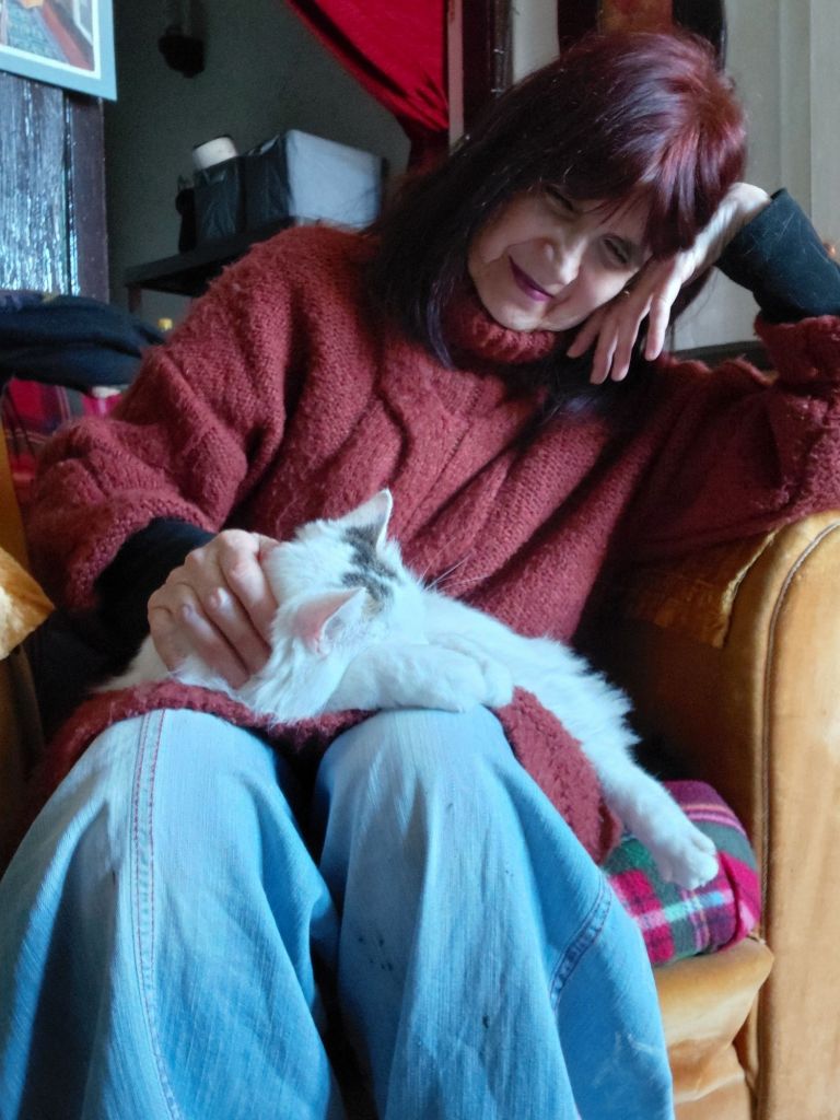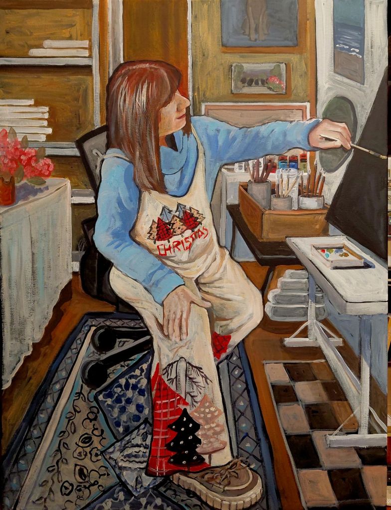 Fluffy was in a friendly mood this morning. Maybe this will be my second painting in ” the artist” series.
