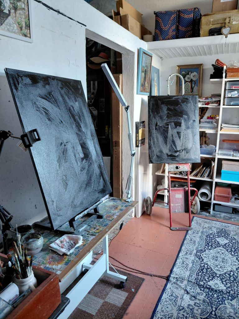 After all that travelling I only spent half an hour painting. Though I also prepared another 2 canvases.