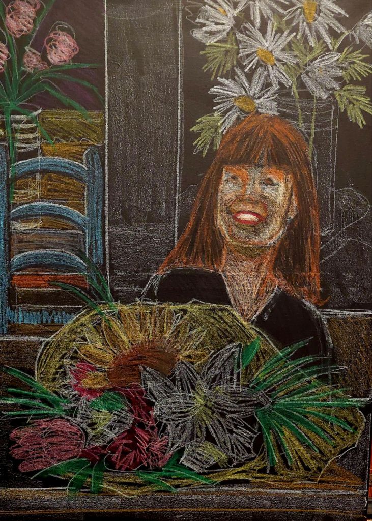 I was just thinking how important it is to do a very rough sketch with the neocolours. It kind of liberates my brain. It took about an hour to draw this . I didn’t use squares this time, but I printed a photo so that I can easier measure proportions on the face. Trying to do that on a tablet screen is tricky as the image moves.
