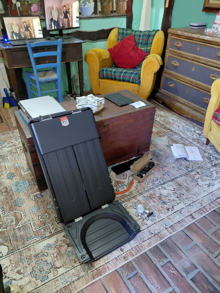 Today I began by bringing the new folding gas heater through into the warm part of my house. I’d read the instruction book and decided I could probably do this. ( set it up.)