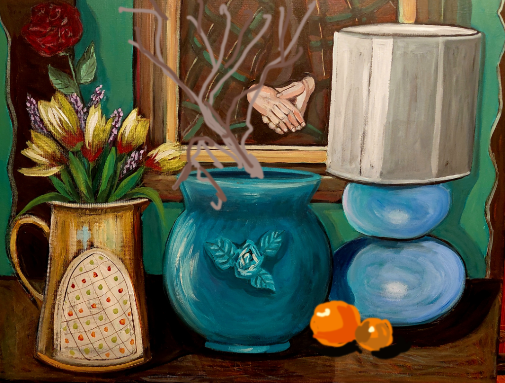That’s where my paintart app is so helpful. I can download a photo of the painting and then draw things on it to see how they look. So much better than painting something and then changing my mind.