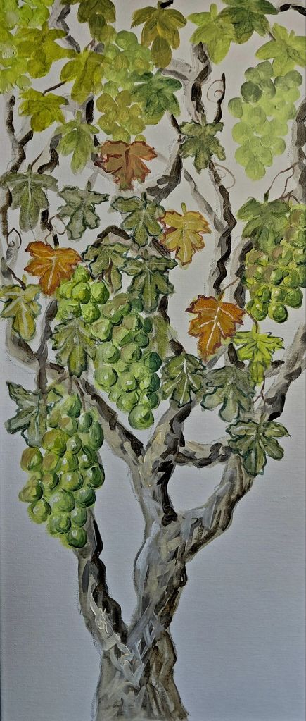 Good news is that I’ve finished the portrait as well as possible and started on the plan for a grape vine painting.