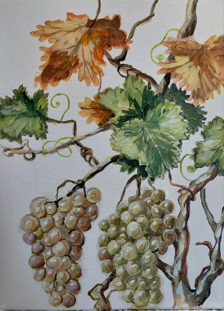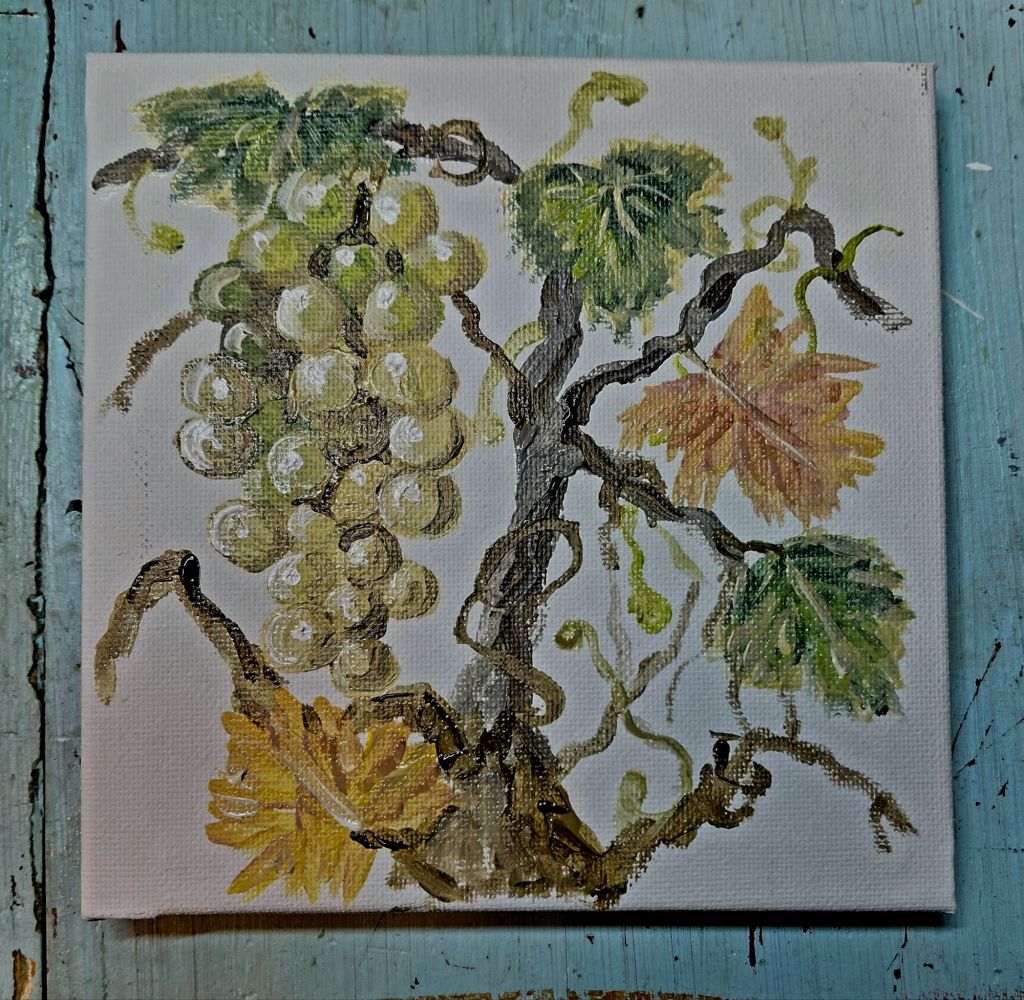 So this morning I painted a more close up view of grapes and a vine.