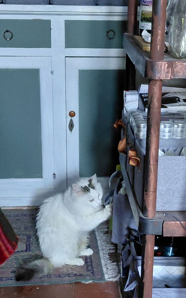 Fluffy spent most of the afternoon inside with me. She doesn’t like the latest catfood and keeps hoping that there is better stuff in the box…..