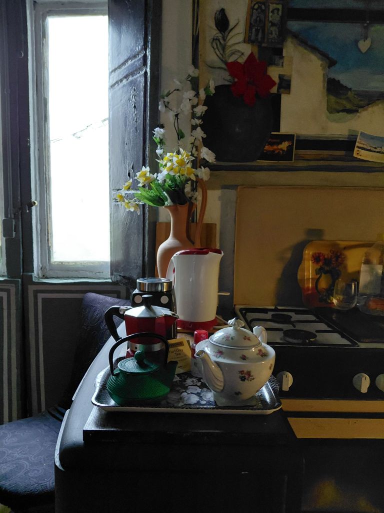 I was given a very pretty flowery teapot today and the electric kettle I ordered arrived.