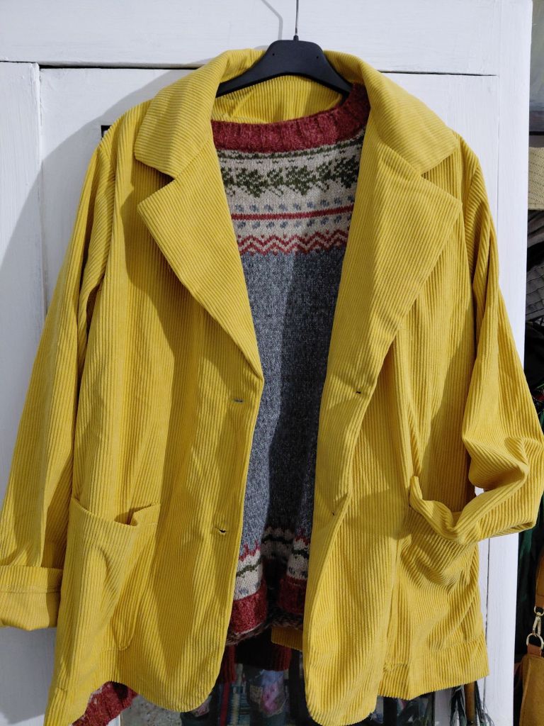 A yellow corduroy jacket arrived today. It looks like sunshine. I’m looking forward to when I can wear it.