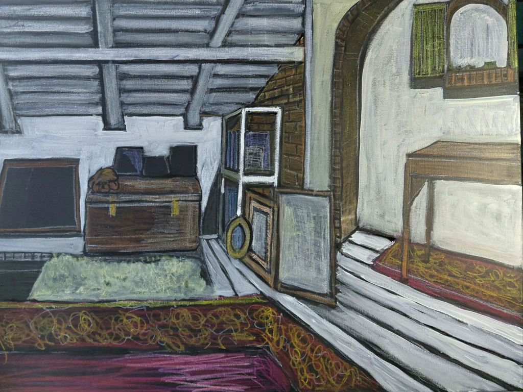 Today I started another “not exactly still life painting.” It feels like I’m on a journey where I don’t know the destination. So this is number three on the road…..