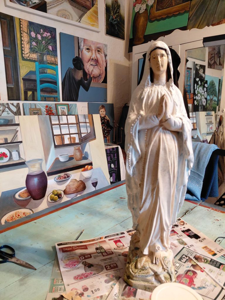 And I painted 2 coats of gesso on the statue as well as adding a little more plaster.