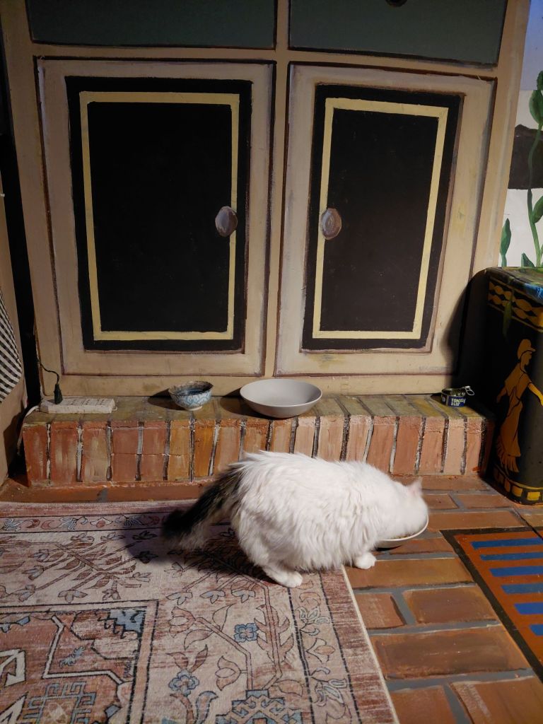 I painted over some of the gold pattern at the front and made some changes to the roses and leaves. And finally I changed the colours of the bowl.