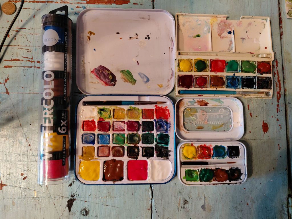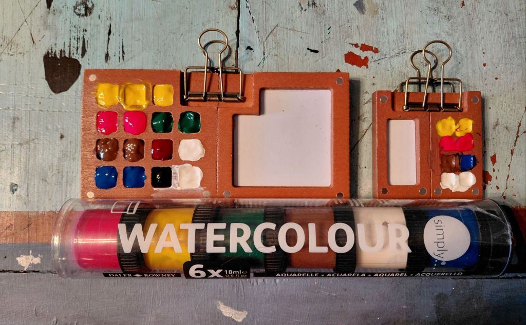 This afternoon I’ve been fiddling with watercolours. I thought that I’d better check what I have and test some things out.