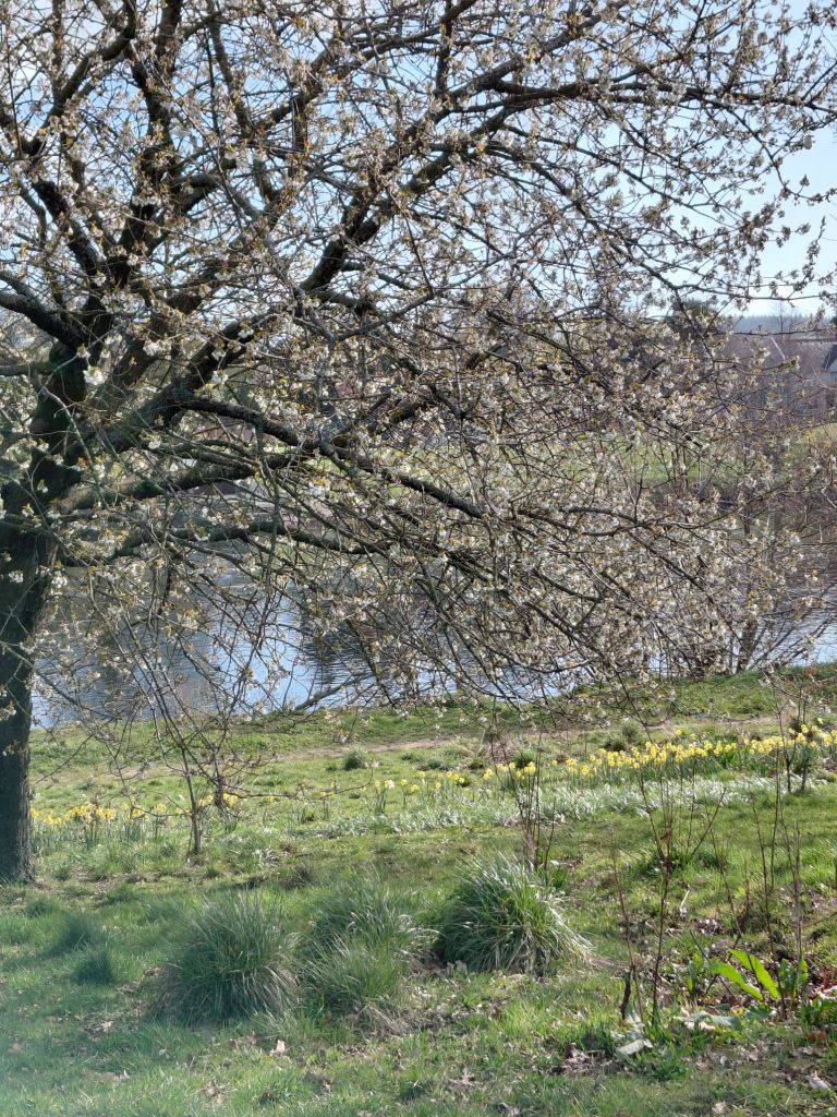 This morning Katy and I went for a walk by the river. It was a beautiful day full of spring flowers and sunshine. Lots of people were out walking or running.