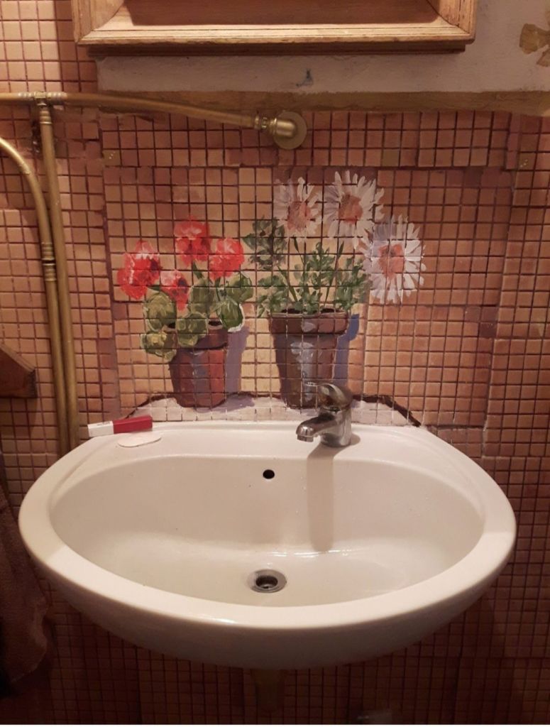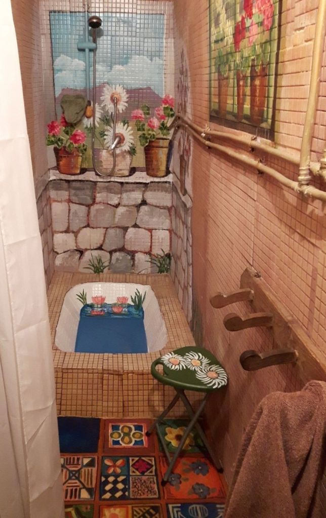 These photos of the shower room are for Avril. 😀 ( and I am quite proud of my lily pond shower. )