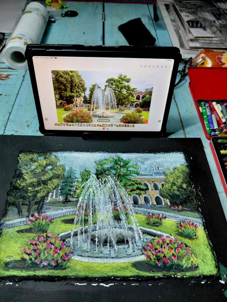 I painted another scene with neocolours. I don’t like this one as much, possibly it’s the composition.
